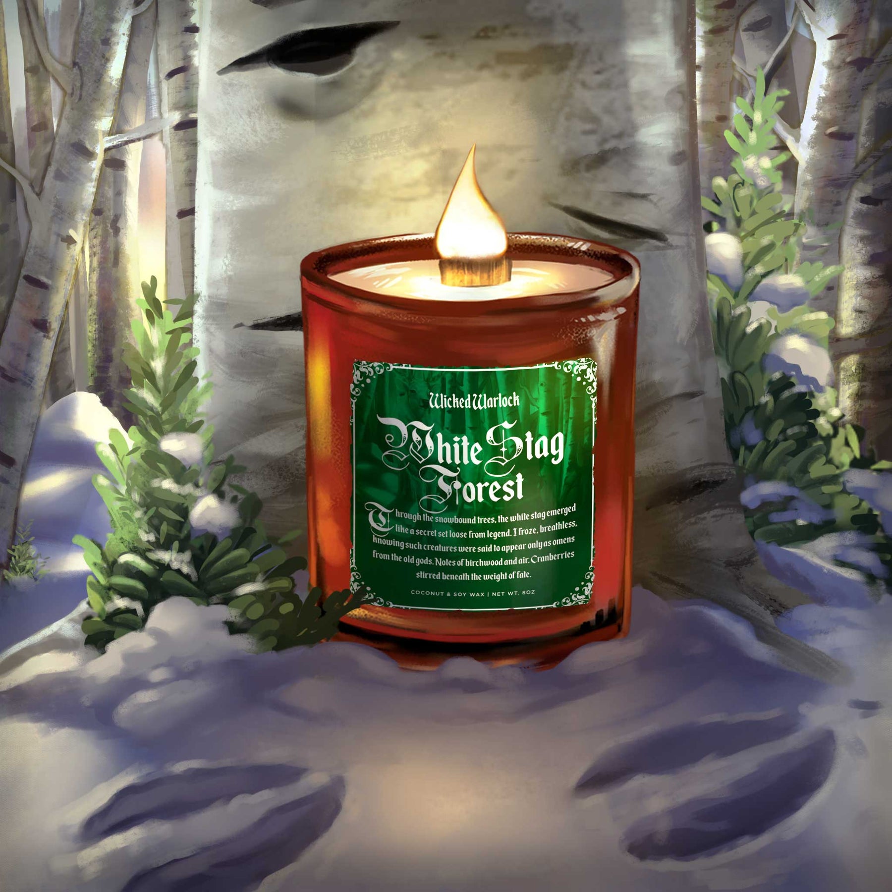 Through the snowbound trees, the white stag emerged like a secret set loose from legend. I froze, breathless, knowing such creatures were said to appear only as omens from the old gods. Notes of birchwood and air. Cranberries stirred beneath the weight of fate.